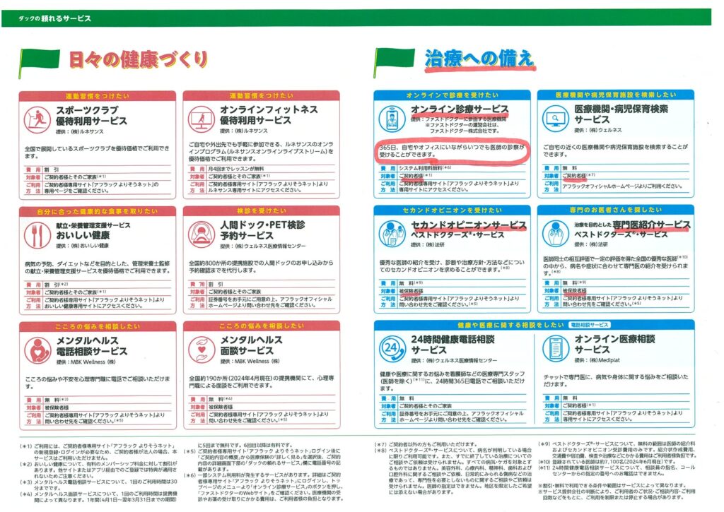 アフラックご契約者様向けサービスのご案内